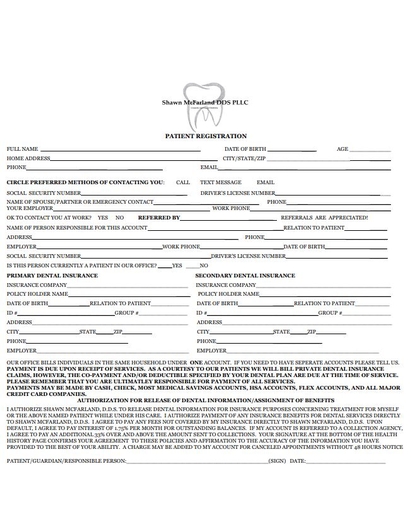 New patients are required to complete our Registration, Medical History, and Insurance/HIPPA forms.